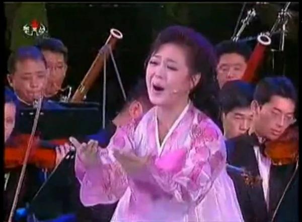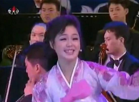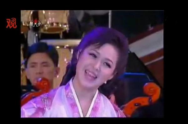 李雪主第一次与金正恩并肩出现在公众面前是在2012年7月6日的一场演出中。当日,金正恩观看新组建的牡丹峰乐团示范演出。在观众席上,金正恩的右手边,一位年轻优雅的女子正全神贯注地观看演出。原文配图:朝鲜“一姐”献唱画面曝光。