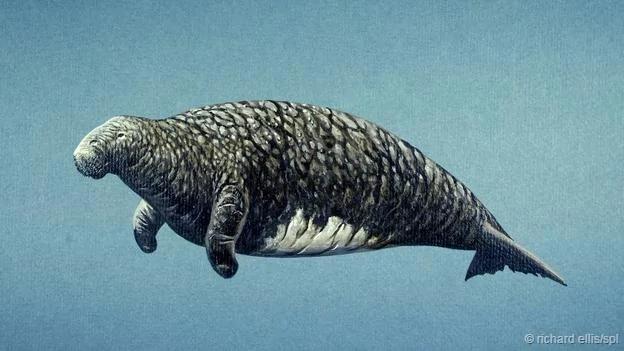 就在两百多年前,如果有水手航行到北太平洋的寒冷水域,他或许就有机会遇到一种巨大的海牛。这种海牛的体长可以达到10米,重量在5到10吨之间。它们还非常擅长游泳,大部分时间都泡在海水里,取食生长在水下的海草。