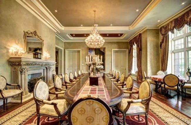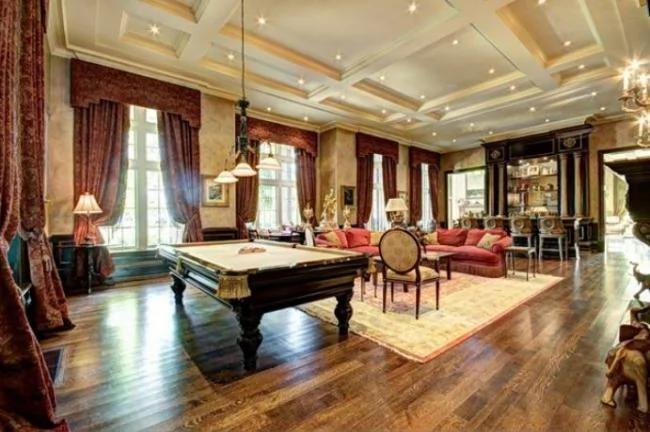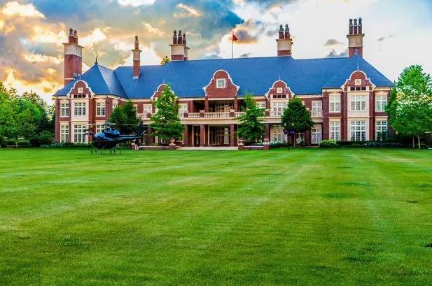该座大宅极尽奢华,拥有可停泊12部汽车的地下停车场、附有旋转楼梯的图书馆、可以存放7000支酒的酒窖、保龄球场、池边设有火炉的大型室内游泳池、私人影院、教堂、湖边亭园。