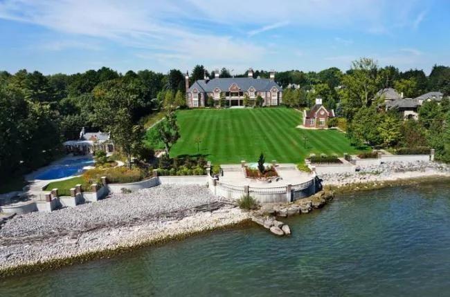 这座加拿大史上最贵豪宅位于安省奥克维尔(Oakville)湖景东路(Lakeshore Blvd)1150号,占地4.7万加平方呎,居住面积为2.8万平方呎(居住面积略小于美国白宫),可以看到安大略湖,距离多伦多市中心也只有半小时车程。