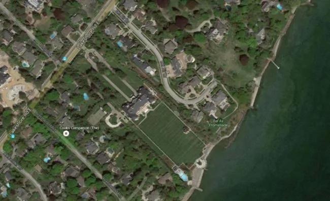 有多大,看看谷歌俯视图,这间豪宅占地相当于旁边的一条街。