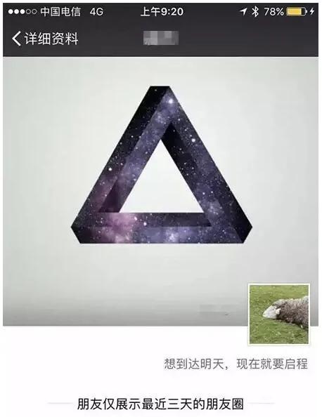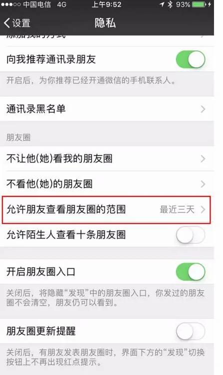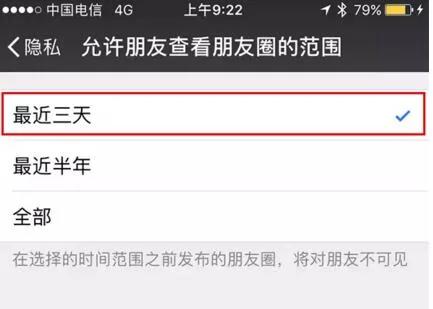 以上是网上的一个段子。不过在新版微信中,这个功能将失灵,你不能向好友关闭朋友圈,但取而代之的是,你可以只向朋友展示“最近3天朋友圈”。