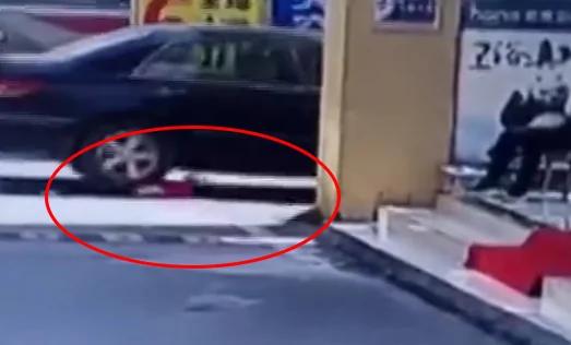 随后轿车在倒车时,将女童撞倒,并卷到车轮下。