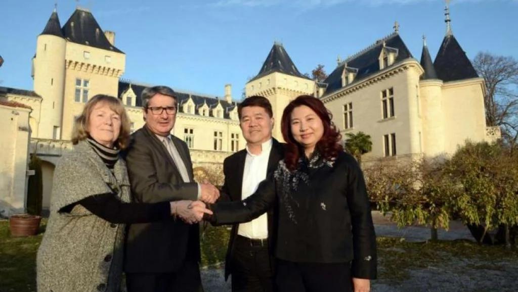 大河城堡酒庄新庄主香港富商郝琳夫妇及前庄主格雷戈瓦夫妇2013年12月。