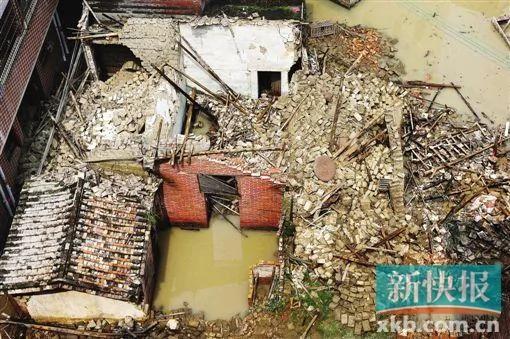 昨日下午,广州市花都区花山镇洛场村,倒塌在水中的老房子。摄影宁彪孙毅