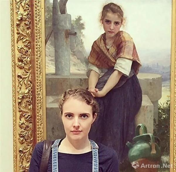 女孩站在旧金山美术馆展厅,法国古典油画大师布格罗《BROKEN PITCHER》前。这个合照,用网友“熊囧囧和囧囧熊”的留言来形容:发型和身材都一样,厉害了。但我只服黑眼圈都一样。