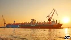 2018年1月16日,中国江苏省南通,一艘中国制造的2万“20英尺标准集装箱”货轮。