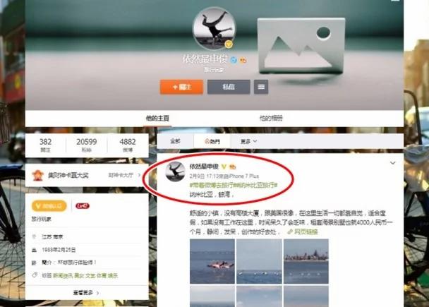 从“依然最申俊”的微博个人帐号资料所见,他来自江苏南京,本月25日便年满30岁,其简介中写上“环球旅行体验师”,周五下午17时13曾发布在纳米比亚鲸湾所拍下的照片,这也成为其生前最后发布的贴子。