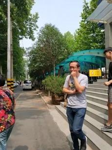 2018年7月5日上午,李文足、王峭岭及刘二敏来到河南省第二监狱,想为江天勇存钱并探望他,不过未能成功。图为刘二敏被国保抢手机(受访者独家提供)