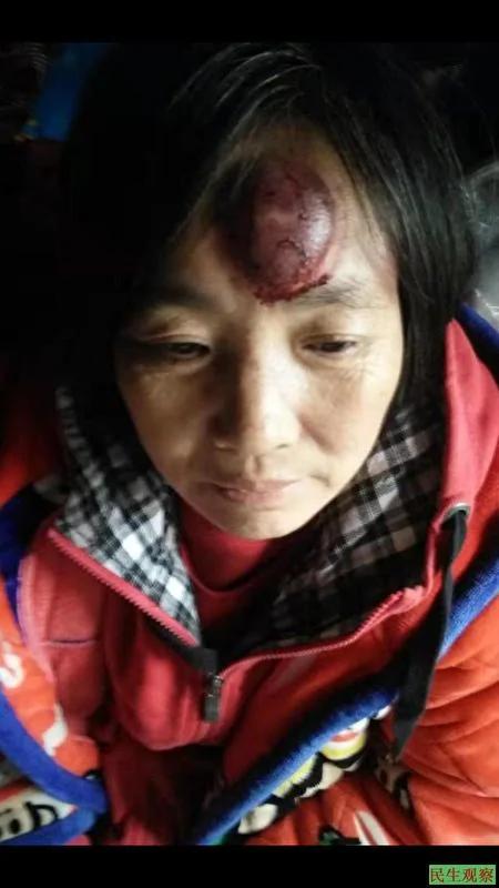 张翠英头上被殴打出鸡蛋大的血包。(受访者提供)