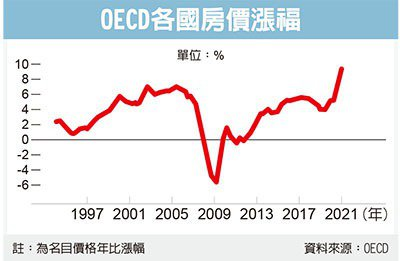 专家指出,由于各国在疫情期间采取扩张性财政与货币政策,利率空前之低,且家庭累积储蓄,加上在家工作的民众渴望较大的居住空间,因而引燃房价涨势。