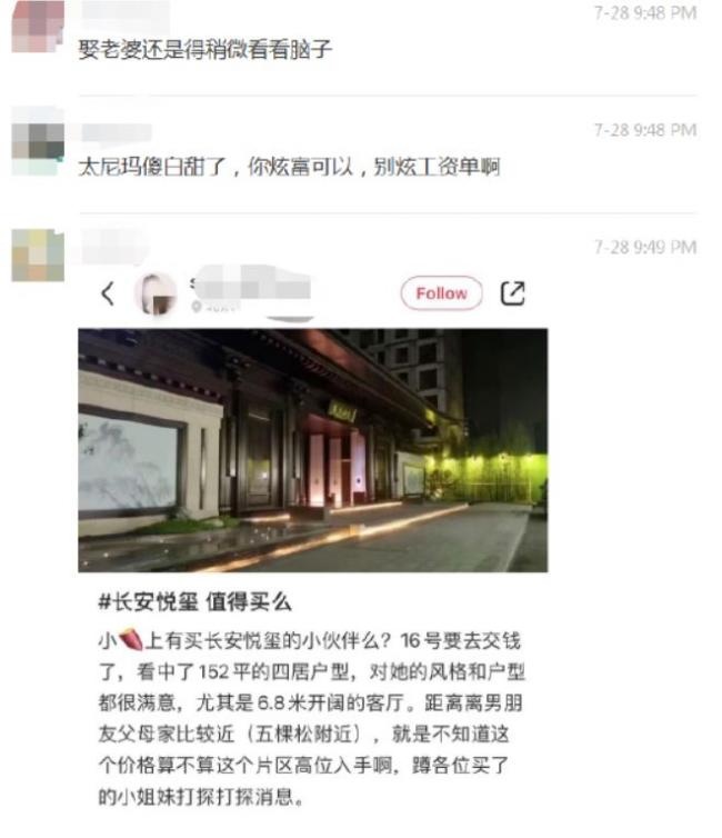 更让人羡慕的是,这个女子称看上了一套单价7.95万的小区房子,拿下来得1200万,妥妥的豪宅。